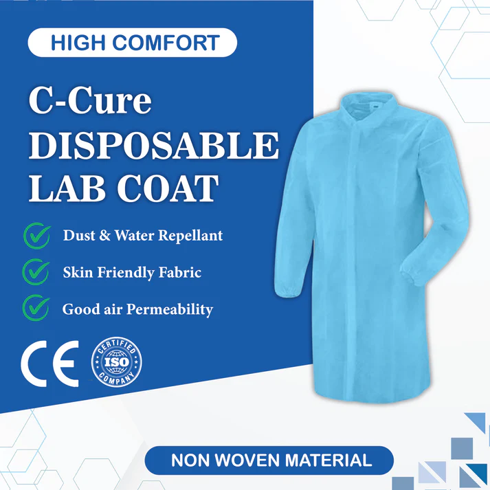 The C-Cure Non-Woven Disposable Lab Coat with Full Sleeves & Elastic Wrist is designed to provide reliable protection in controlled and hygienic environments. Manufactured using high-quality 40 GSM non-woven fabric, this disposable lab coat offers an ideal balance of durability, breathability, and comfort.